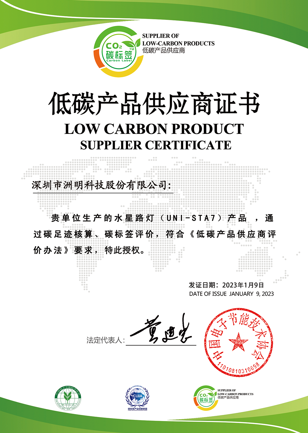 低碳产品供应商证书-水星路灯
