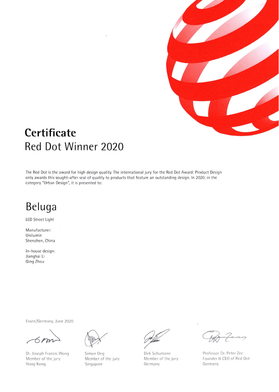 鲸鱼路灯获2020年红点奖