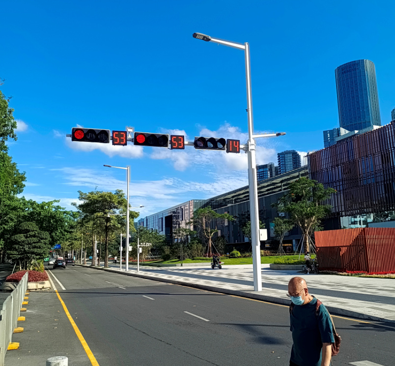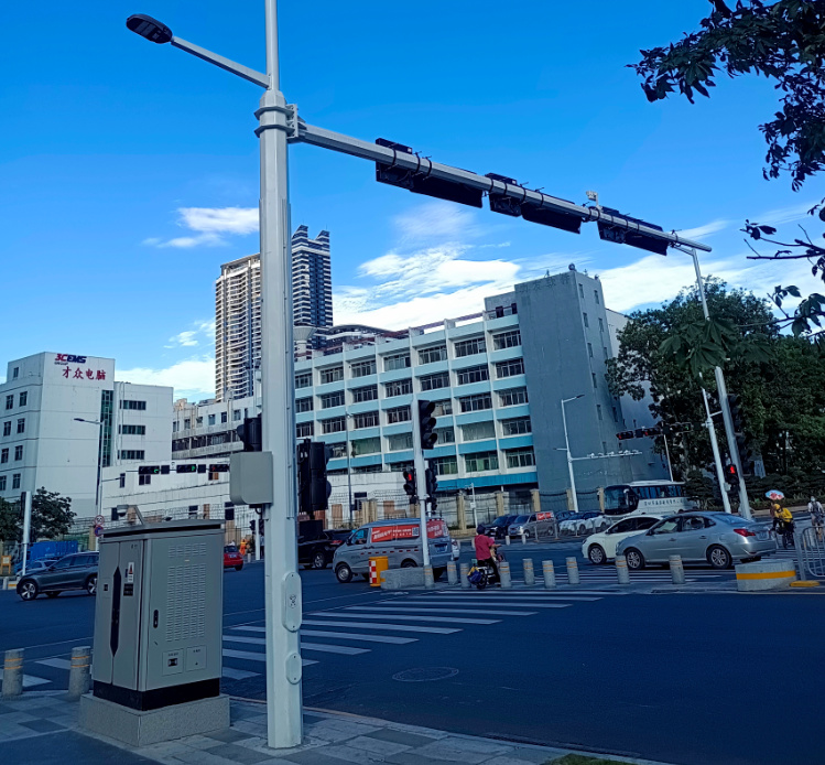 项目采用六大类、38种小类杆件273套,挂载设备含110套信号灯具、48套电子警察、55套反向卡口、200多台各类补光灯、54台监控摄像机、9台全景摄像机、1处交通诱导屏及配套设备等。