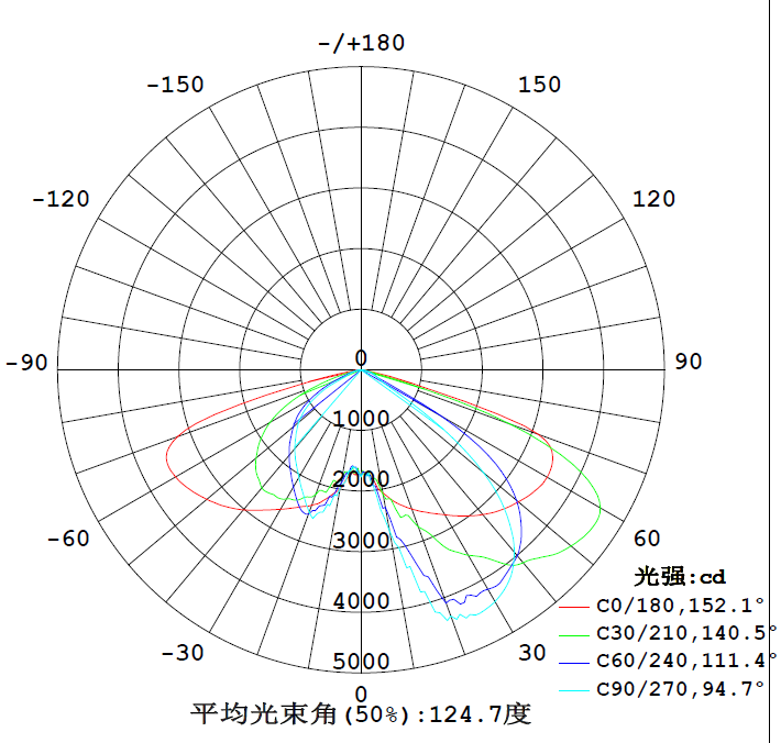 | 配光曲线或光斑 | Type II 短投射 | |||