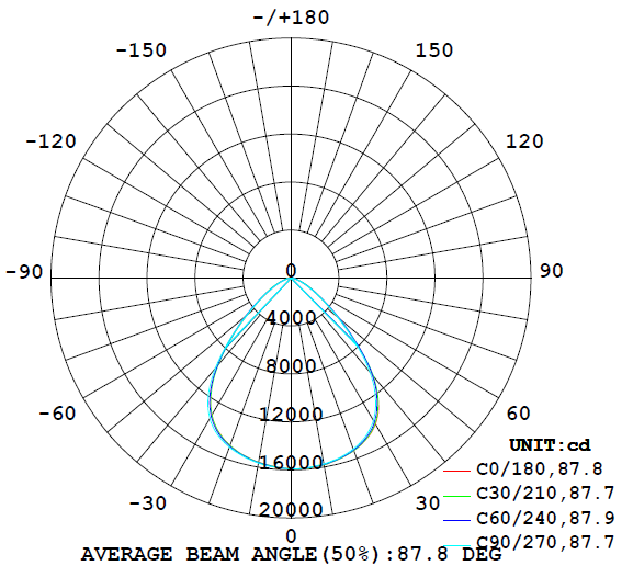 | 整灯光效(lm/W) | 160±7% (@4000K,25℃) | |||