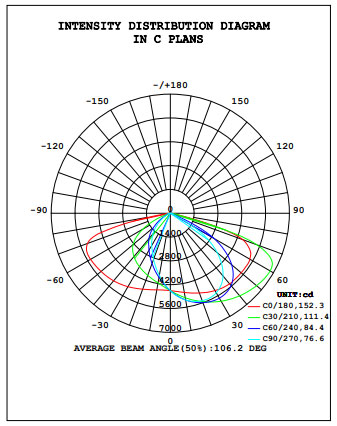 | 整灯光效(Ta=25℃) | 170lm/W@4000K | |||